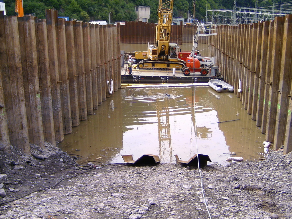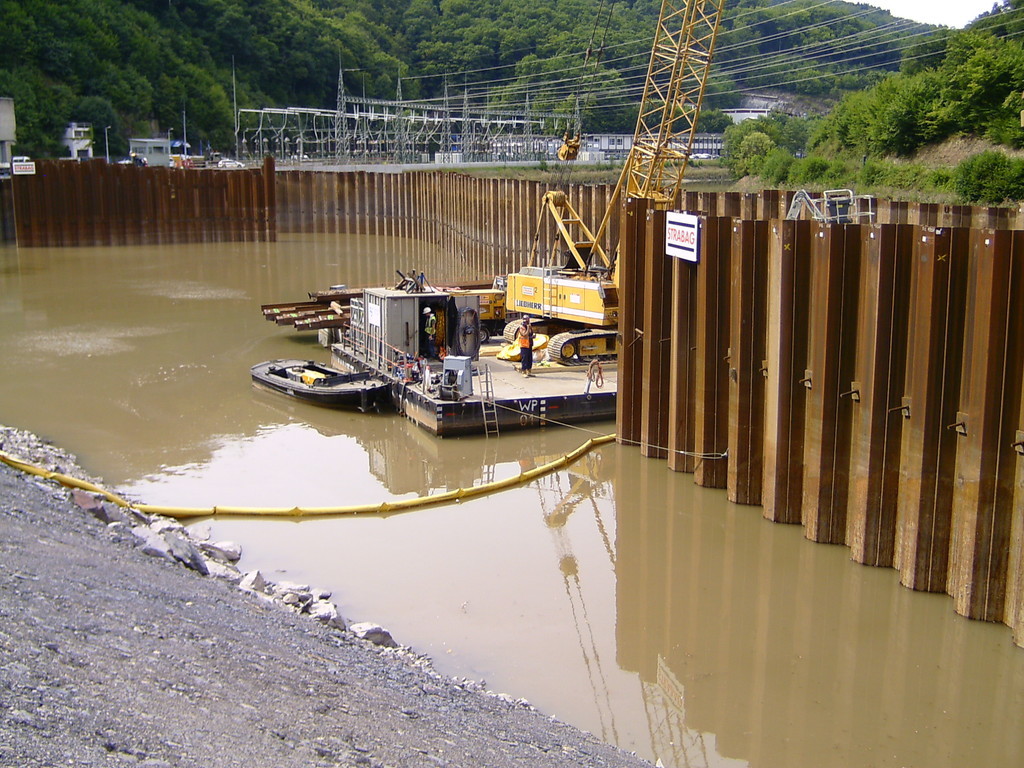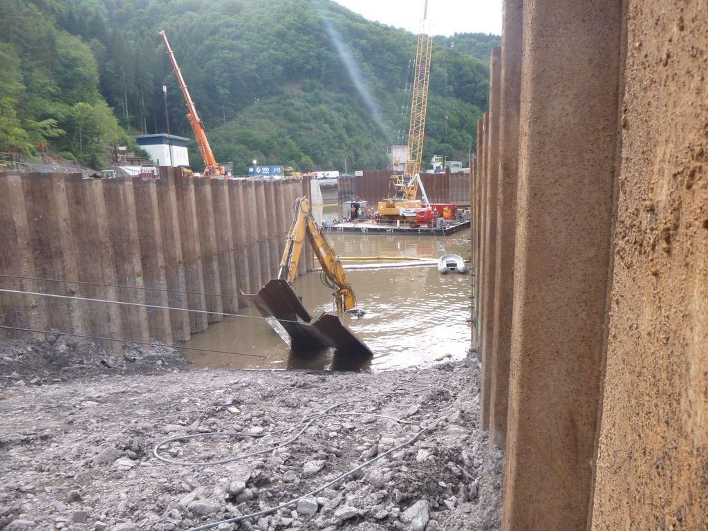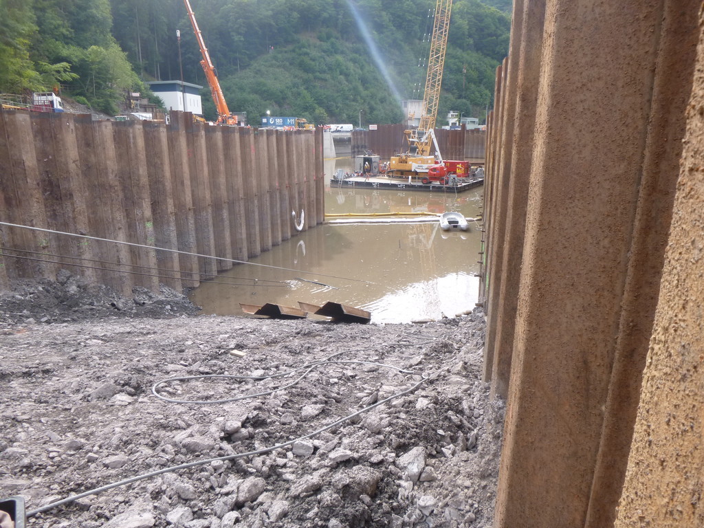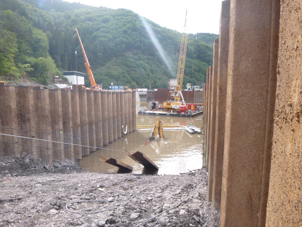 Der Bagger wurde mit Panzeranschlagseilen sowie 30 t Bergewinden im Wasser in eine aufrechte Position gebracht und anschließend aus dem Stausee geborgen.