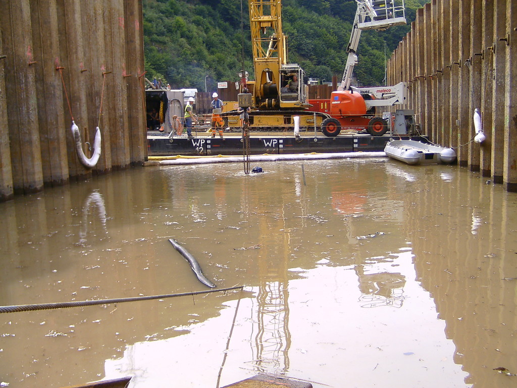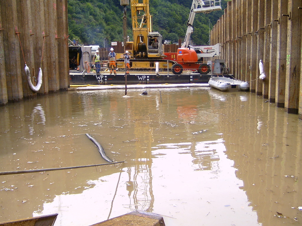 Nach der Teambesprechung vor Ort mit den Verantwortlichen sowie den Industrietauchern konnten die Bergungsarbeiten beginnen.