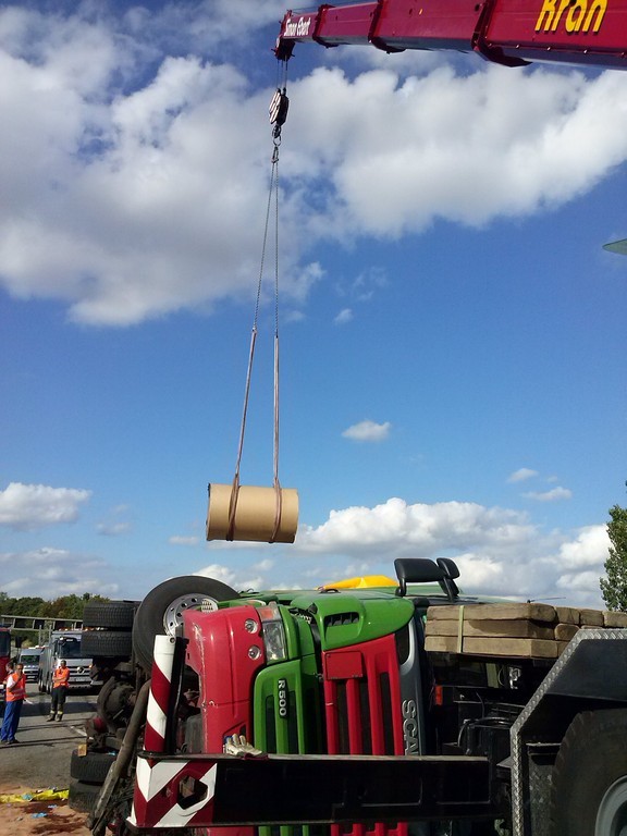 Glücklicherweise durchbrach der LKW nicht die Betonleitplanke zur Gegenfahrbahn. Trotz dichten Berufsverkehrs wurde keinem Dritten Schaden zugefügt. Dank der perfekt gesicherten Ladung von 8 Papierrollen, welche jeweils 3to wogen, konnten diese fast beschädigungsfrei aus dem Sattelauflieger geborgen werden. Wegen der schnellen Räumung durch die Feuerwehr und der Autobahnmeisterei, konnten während den Bergungsarbeiten zwei Fahrspuren freigegeben werden.