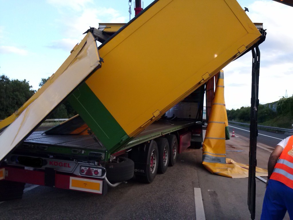 in Container geladen und von der Unfallstelle abtransportiert.