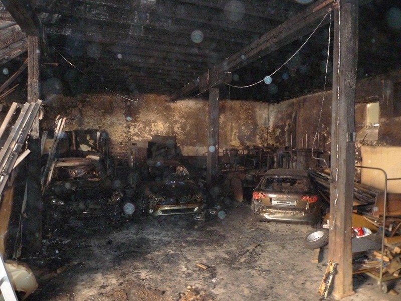 Nachdem in der Nacht zum 21.08.2012 die Lagerhalle einer ehemaligen Brauerei in Friedberg in Flammen aufgegegangen war wurden wir beauftragt die verbrannten Fahrzeuge aus dem Gebäude zu bergen.